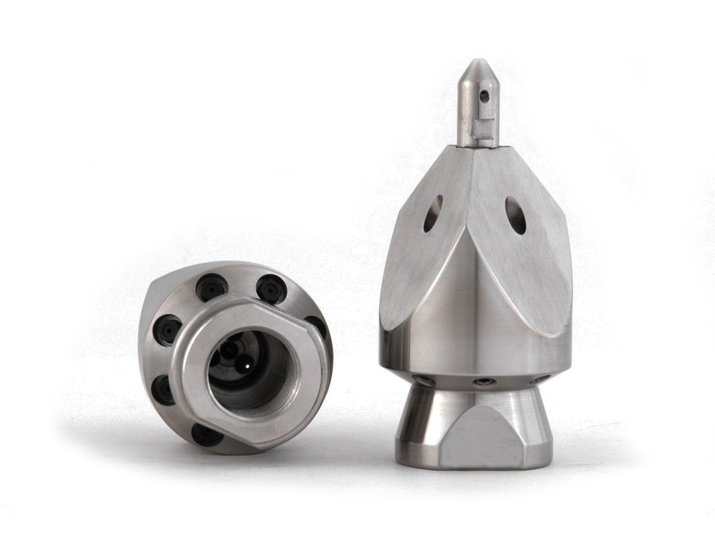 - Различные опции переднего сопла размывают закупорку, а заострённые кромки разрушают ее и и позволяют насадке глубже проникать в слои засора, бой воды назад осуществляет тягу и промывку трубы, что обеспечивает быструю и надёжную чистку;